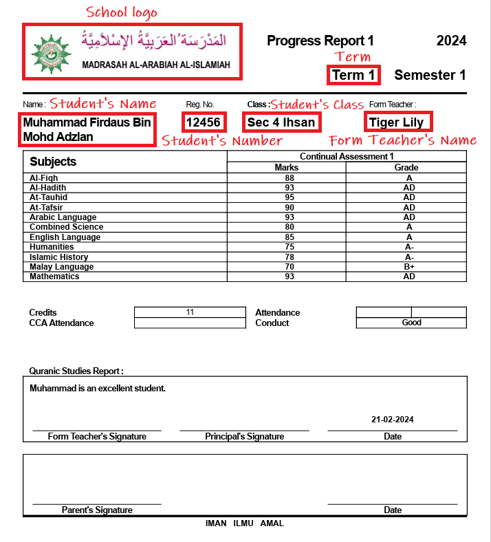 How to print a student's report: Marks, Grades and Verbal evaluation