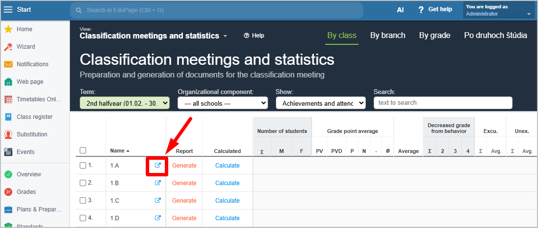 In the left menu, select Documentation / Pedagogical Documentation, then choose Classification meetings and statistics.