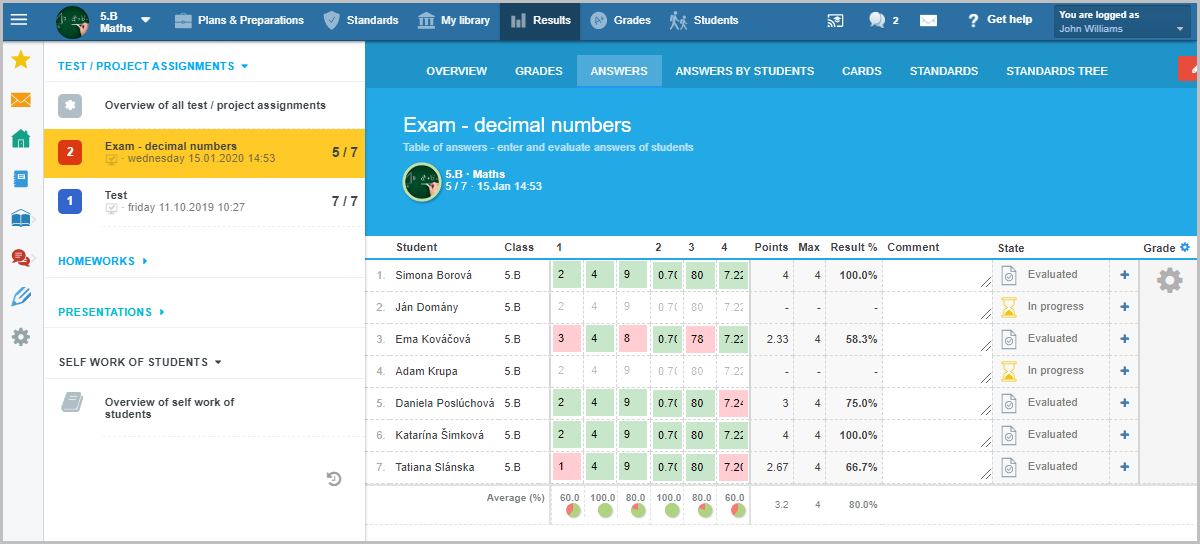 The advantage of this option is that the results of all students will display in one overview. You can return the test/homework for rework simply by setting the "For rework" option in the "Results/Grades" tab in the specific student row. How to assign students a test again / return it for rework?