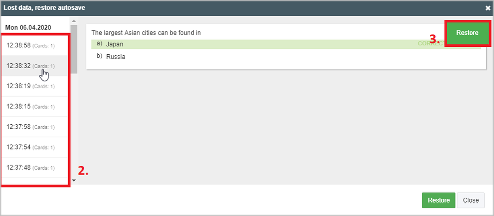 If your internet connection or power is suddenly out during creating new cards in EduPage, or you simply haven't saved your changes, the data can be restored.