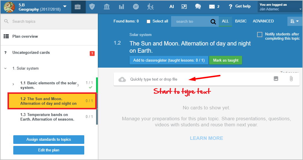 Click to the topic of the plan you want to take notes on. Start typing in the box.