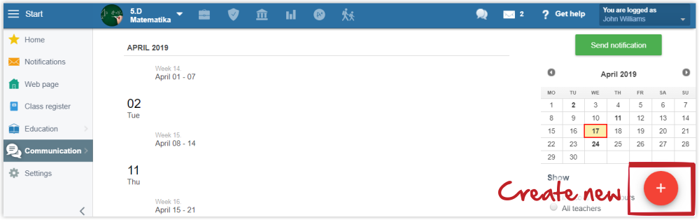 To create new teacher-parent meeting, press red + button in bottom right corner.