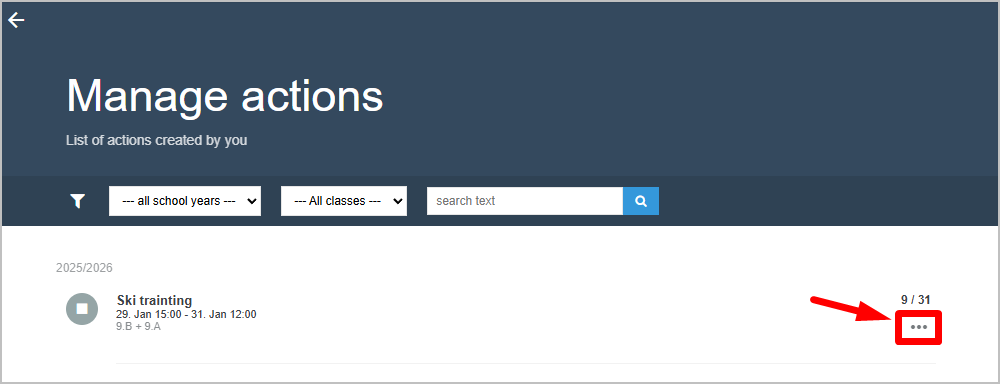 For the sign‑up event / survey you want to copy, click the three dots.