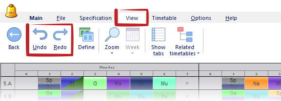 You can move between your changes in the timetable by menu View - Undo/Redo: