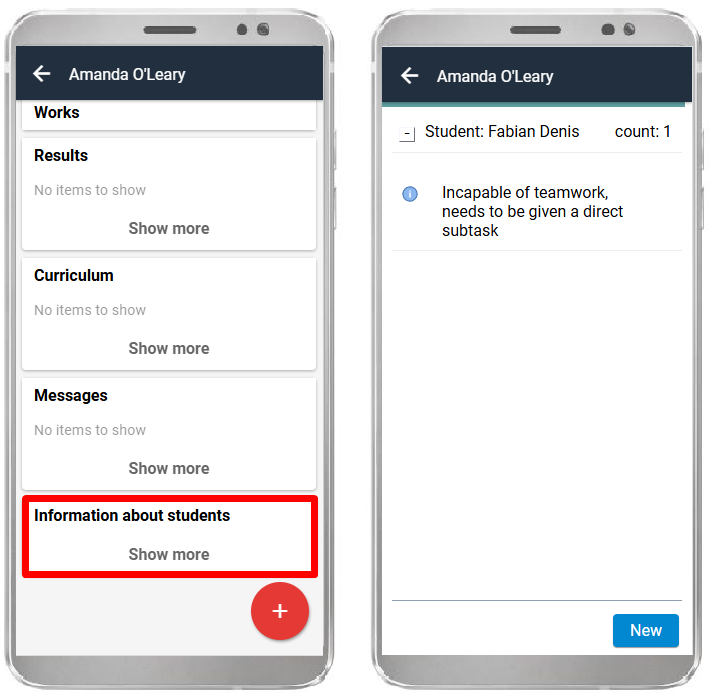 In the mobile application, teachers can find Student Information in the My Lessons section. After clicking on a specific lesson, select More actions – Student Information.