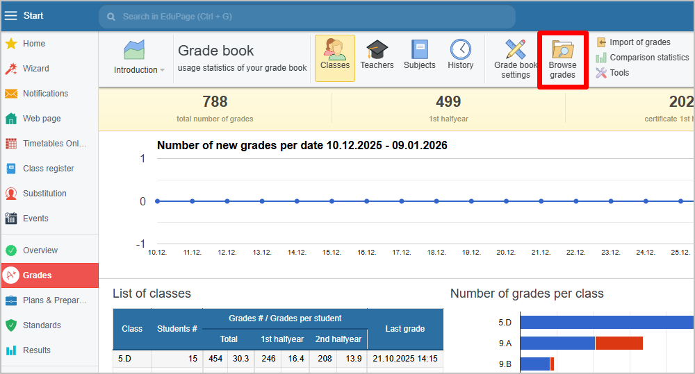 In the top menu, select Browse grades.