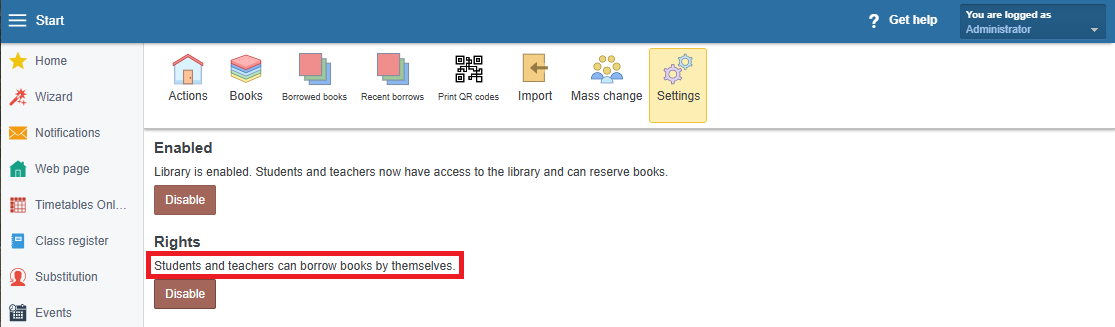 The Library in EduPage allows students to borrow books directly, without needing a third person (librarian).