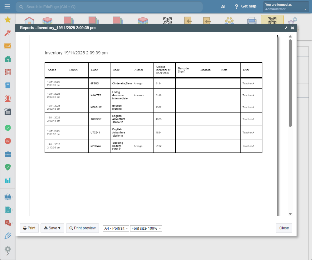 If the book item that has already been recorded in the list is later decommissioned or deleted, it will remain in the inventory record with information about its status.This information will be displayed even after the inventory record is closed.