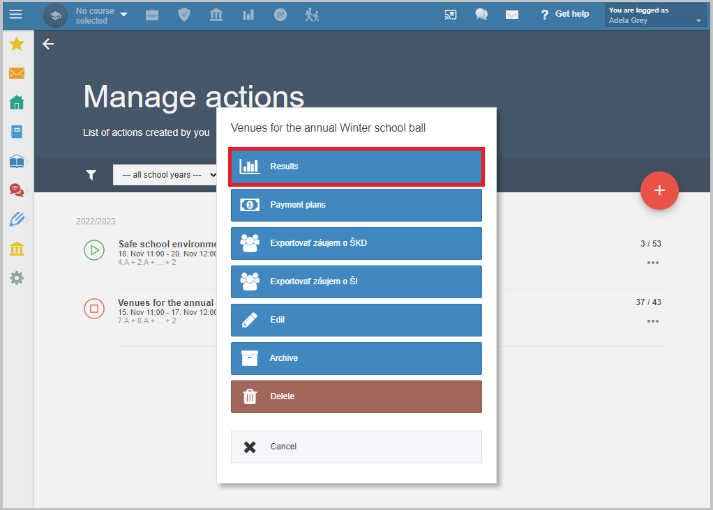 Select Results.