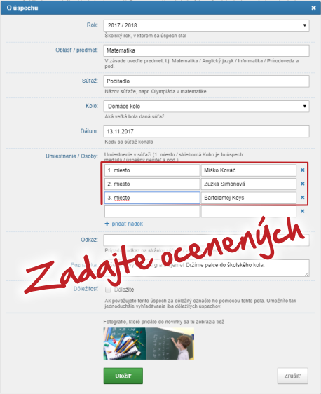 Jednotlivé záznamy v sekcii Úspechy a ocenenia môžete aj neskôr editovať