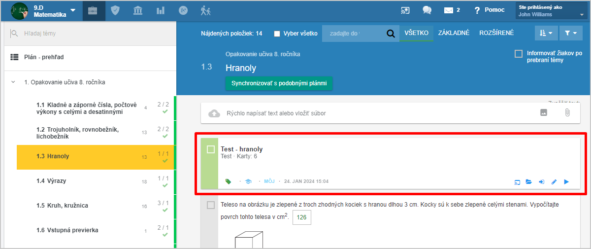 Vytvorený test nájdete tam, kde ste ho vytvárali. Napr. v téme plánu úplne navrchu.