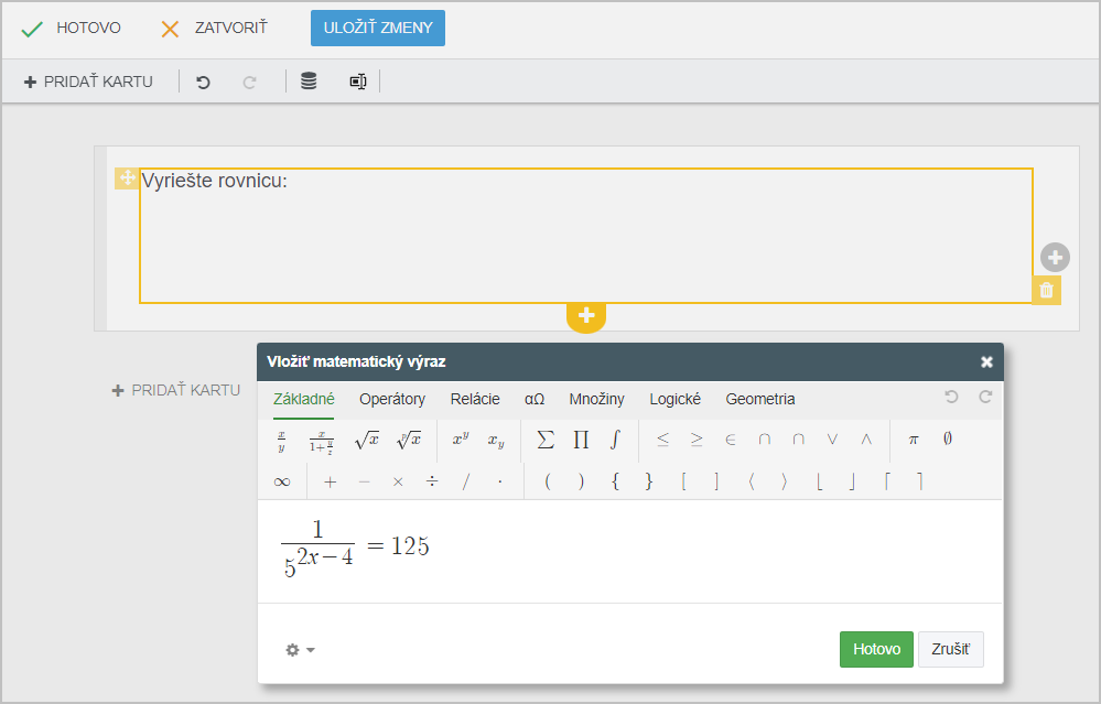 Po uložení karty sa TeX-ový výraz interpretuje a zobrazí sa napísaný vzorec.