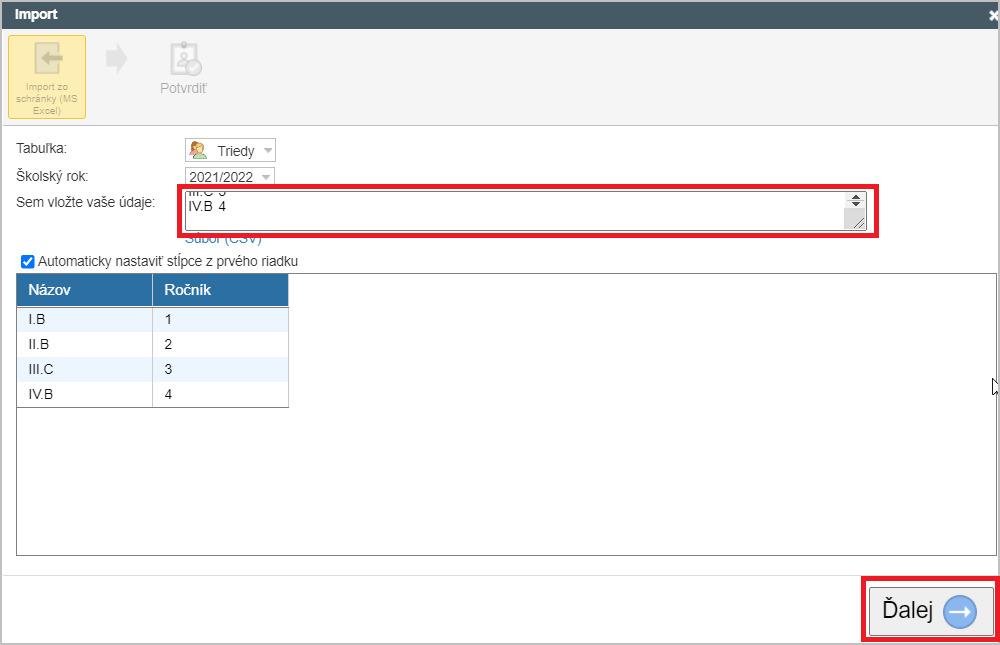 Skopírujte dáta z excelovského súboru (CTRL+C).