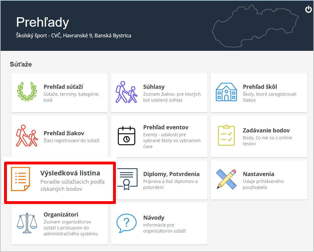 Konečná výsledková listina (tak, ako ju uvidia školy, sa zobrazí v časti "Výsledková listin"