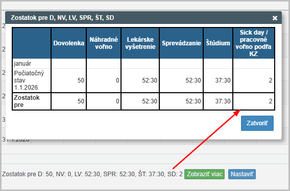 Keďže čoraz viac a viac škôl disponuje pracovným plateným voľnom, vyňali sme také spod Dôležitých osobných prekážok ako ďalší typ zostatku, ktorý si ako škola vieme sledovať, a to pod názvami Sick day/pracovné voľno podľa KZ.