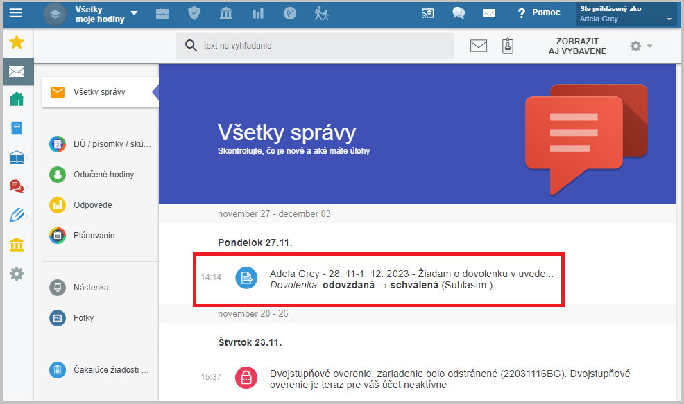 Vyberte z ponuky žiadostí v časti "V zriadovateľskej skupine škôl". Napríklad Dovolenka.