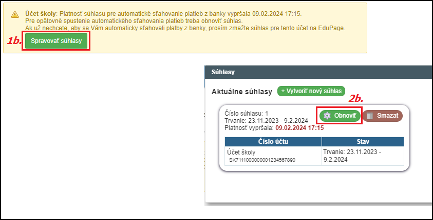 a. Súhlas môžete predĺžiť aj skôr ako vyprší. Upozornenie o blížiacom sa termíne expirácie súhlasu sa bude zobrazovať v module platby 30 dní vopred.