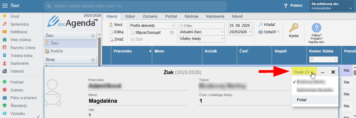 Ako pridať novú triedu žiakovi v ďalšom odbore?