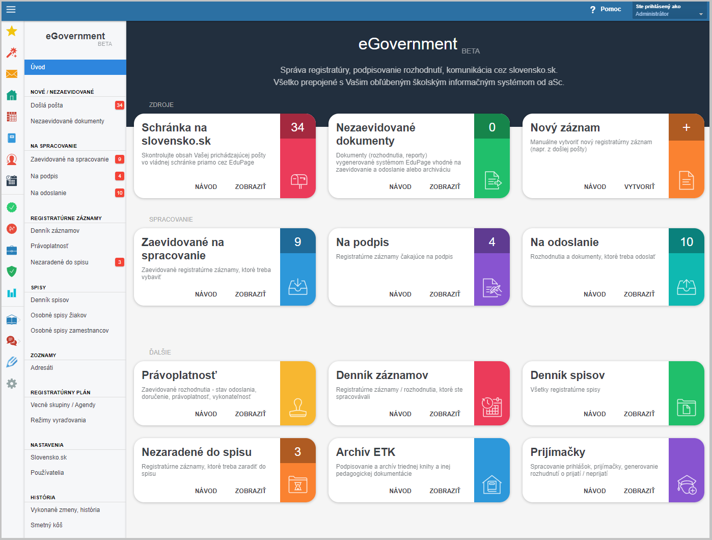 Všetky návody pre modul eGovernment a aSc Registratúra