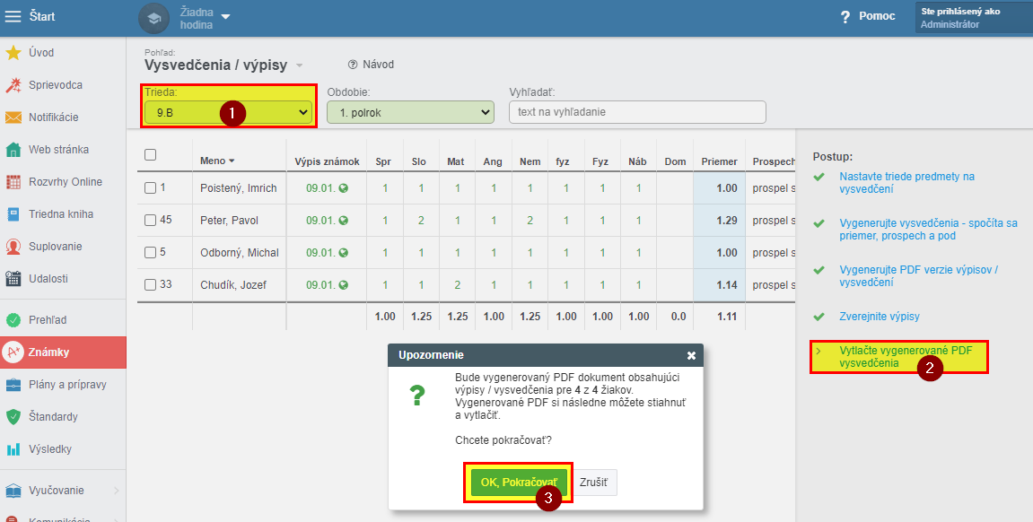 Ako vygenerovať/vytlačiť a doručiť žiakom vysvedčenia/výpisy