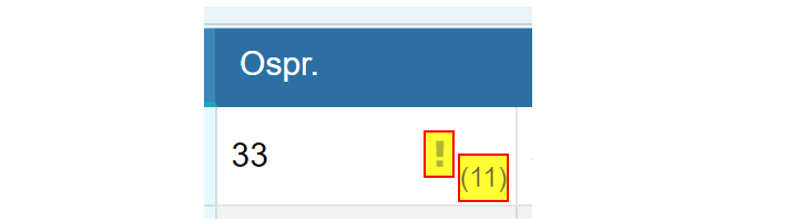 Na nezhodu medzi údajom z ETK (11) a manuálnou hodnotou (33) upozorňuje výkričník, na vysvedčenie sa prenesie hodnota 33.