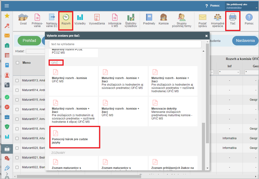 Pomocný hárok pre cudzie jazyky nájdete v časti Rozvrh - Tlač - ÚFIČ: