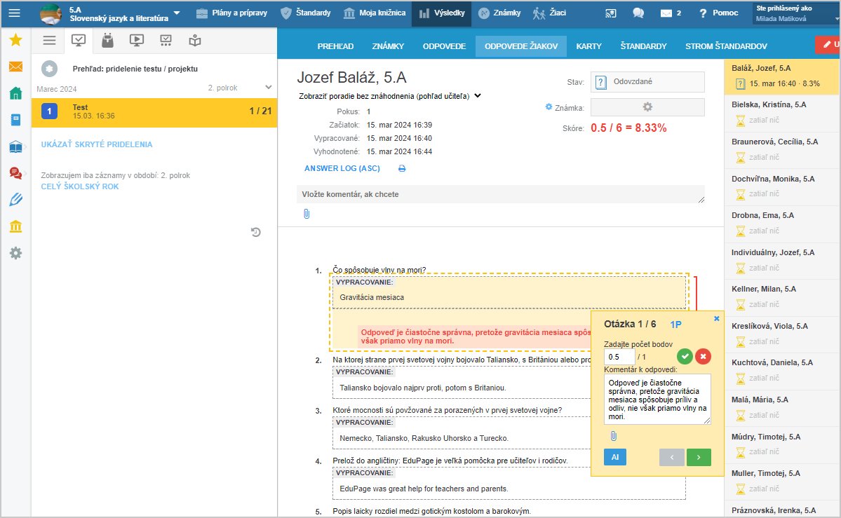 EduPage AI môže učiteľ použiť aj na opravu písomiek, slohov či testov.