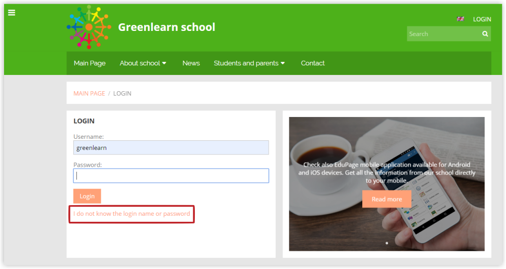 ท่านจำเป็นต้องระบุ ชื่อ EduPage หรือ อีเมลที่ท่านแจ้งในตอนที่ท่านสร้าง EduPage