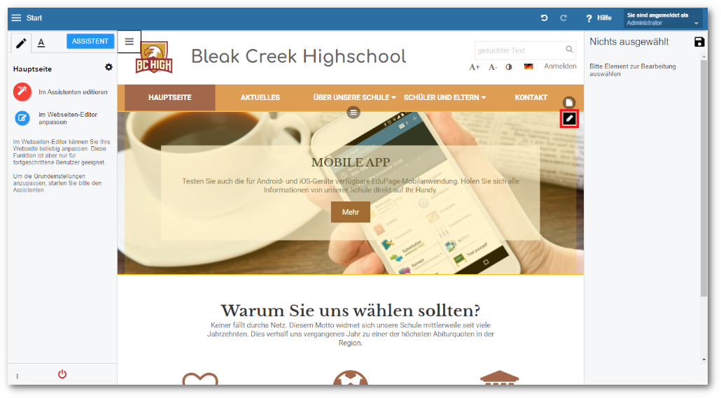 Wenn Sie im nachhinein ein Bild eines Untermenü Punkts oder eines Sliders ändern wollen, dann ermöglicht Ihnen EduPage eben genau das im Handumdrehen zu tun. Wir zeigen Ihnen im Folgenden, wie genau das geht.