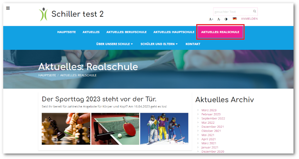 Individuelle Nachrichten für jeden Teil der Schule auf der Homepage einrichten (z. B. Grundschule und Kindergarten)