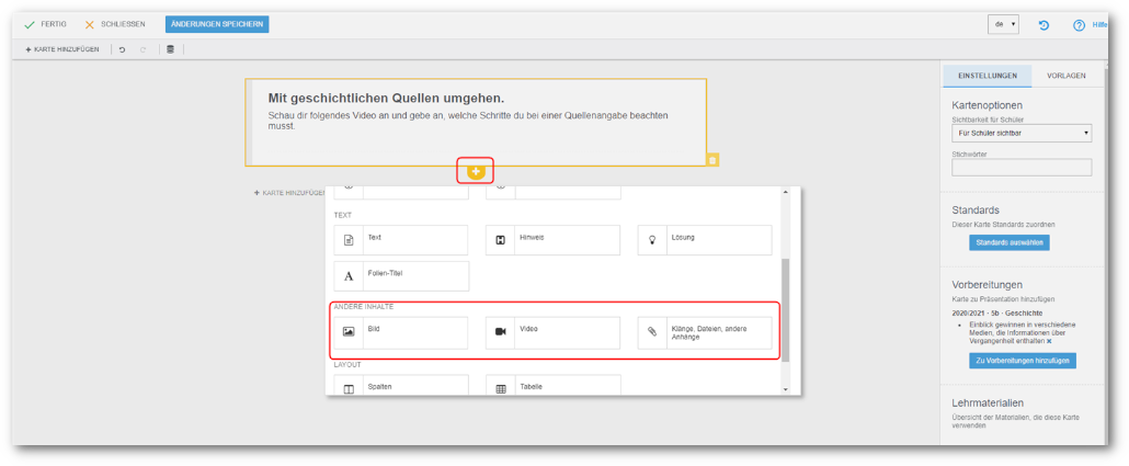 5. Nun ist die Datei in die Lernkarte eingebettet. Speichern Sie Ihre Eingaben ab.