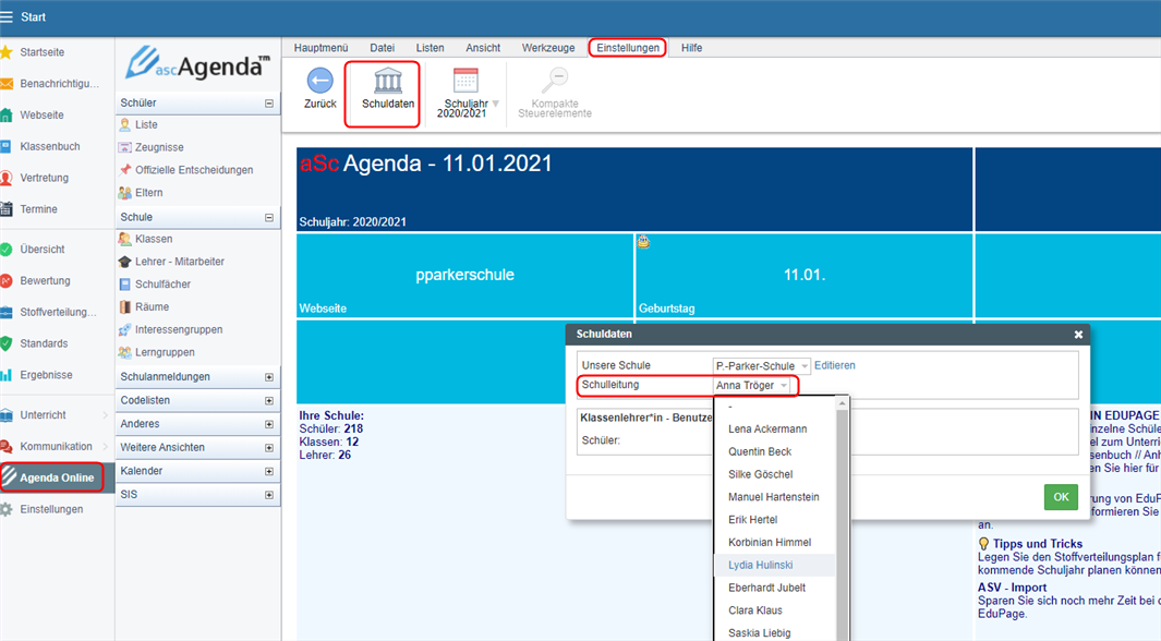 In dieser Anleitung zeigen wir Ihnen, wie Sie als Admin den Namen der Schulleitung eingeben können.