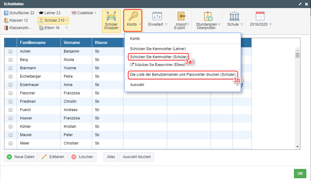 3. Nachdem Sie die SuS ausgewählt haben, klicken Sie auf den Schlüssel Konto.