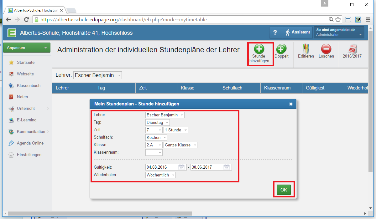 Administrator - Individueller Stundenplan des Lehrers