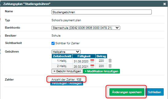 Zahlungsmodul - Weisen Sie Zahlungspläne (Modifikationen) SchülerInnen zu