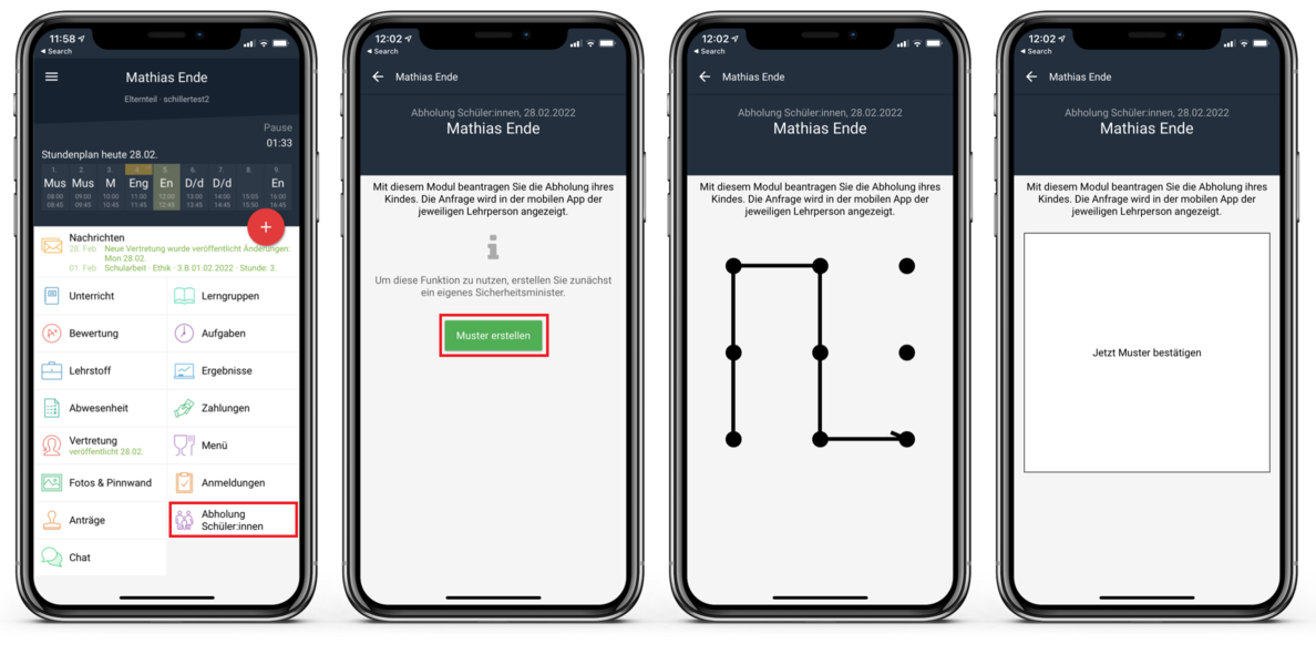 Abholung Schüler:innen - Ich habe den Sicherheitscode/ das Muster vergessen