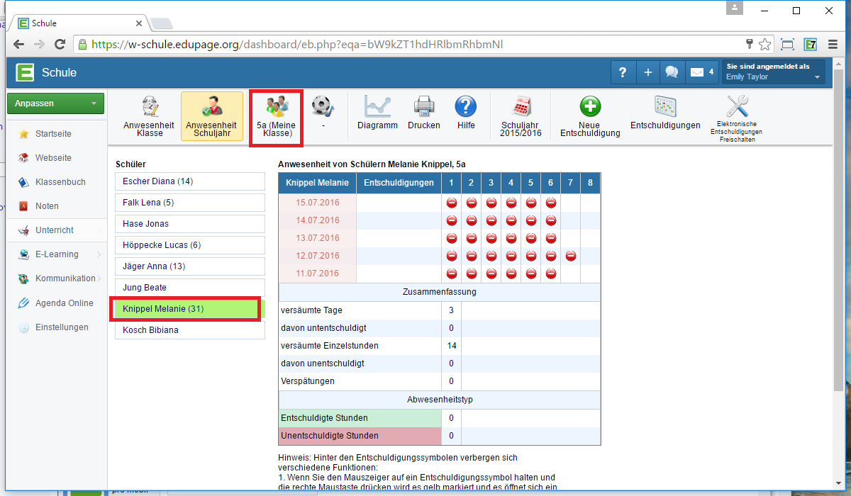 Melanie Knippel hat 31 "unerledigte Schülerabwesenheit".