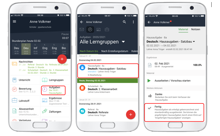 Schüler, Schülerinnen, Eltern, App, Benachrichtigungen, fertig