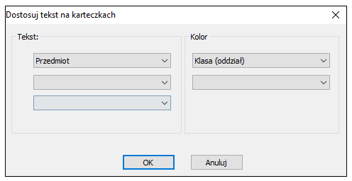 Możemy także zmienić tekst, który będzie wyświetlany na karteczkach. Na przykład w niektórych przypadkach istnieje potrzeba, aby na karteczkach widoczne było nazwisko nauczyciela zamiast klasy.