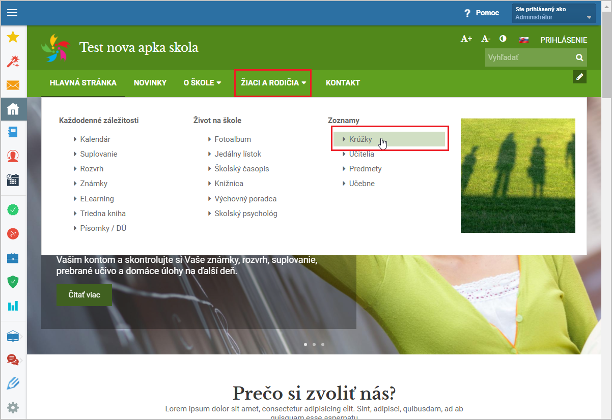 Prihláste sa ako administrátor a vyberte podstránku, kde chcete návštevnosť sledovať: