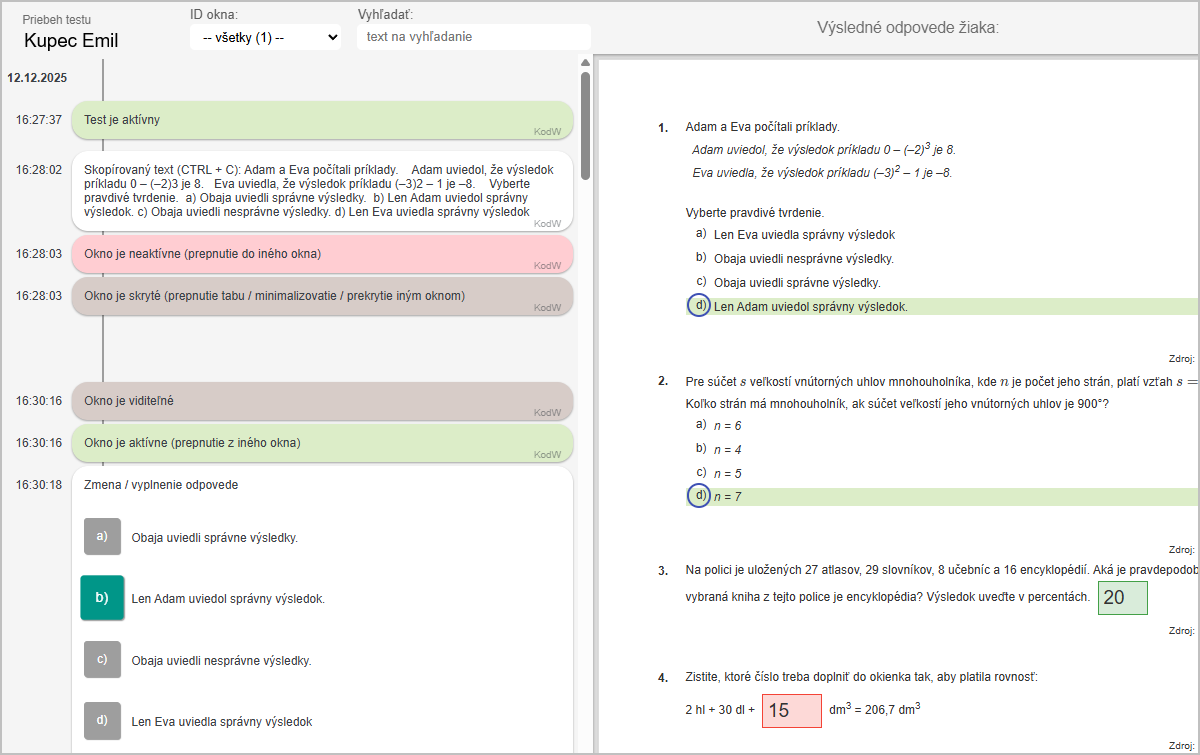 Viac informácií: Monitorovanie priebehu testov, prevencia podvádzania