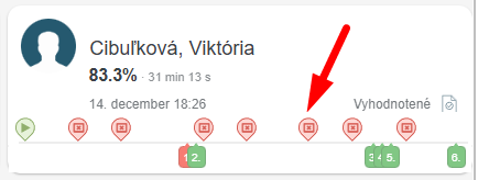 Červené ikony sú opustenie okna s testom. Dôvod opustenia okna nevieme. Možno žiak použil kalkulačku, možno google.