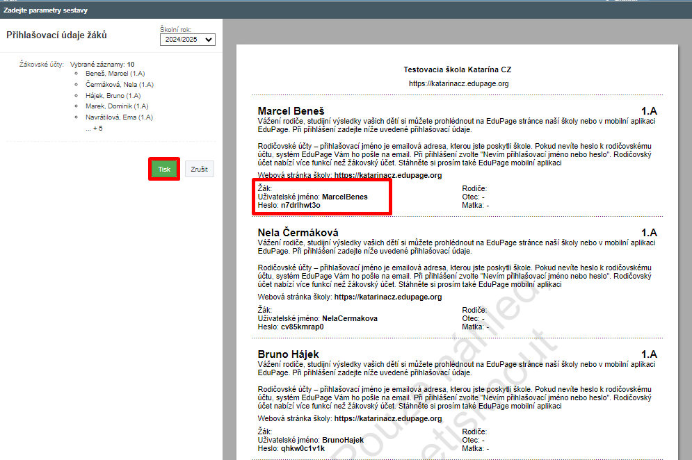 Žákům vytiskněte a rozdávejte přihlašovací údaje do EduPage.