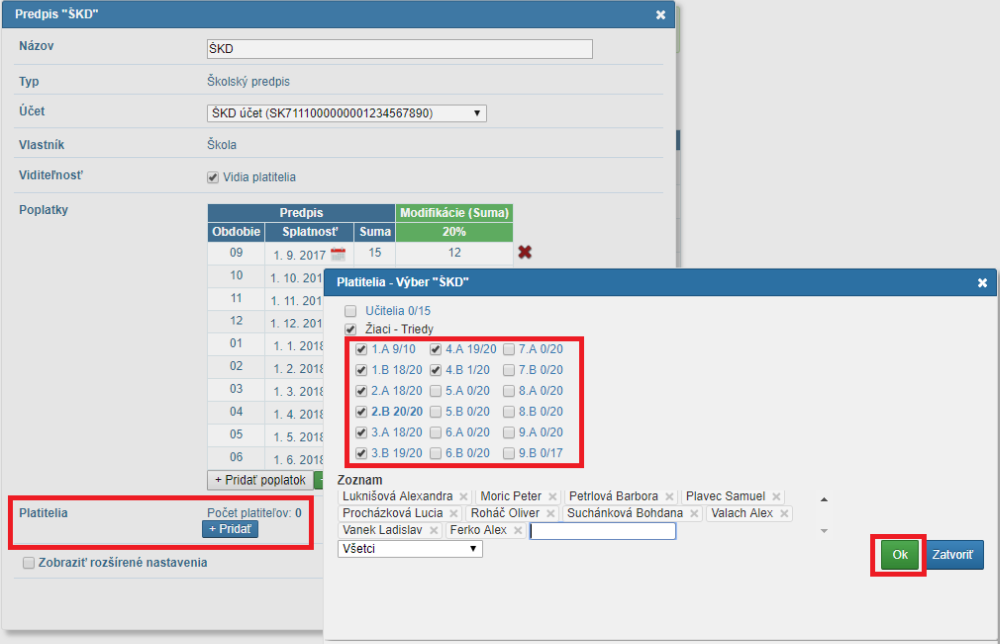 PLATITELIA = KTO MÁ PLATIŤ POPLATKY - ako priradiť predpis žiakom