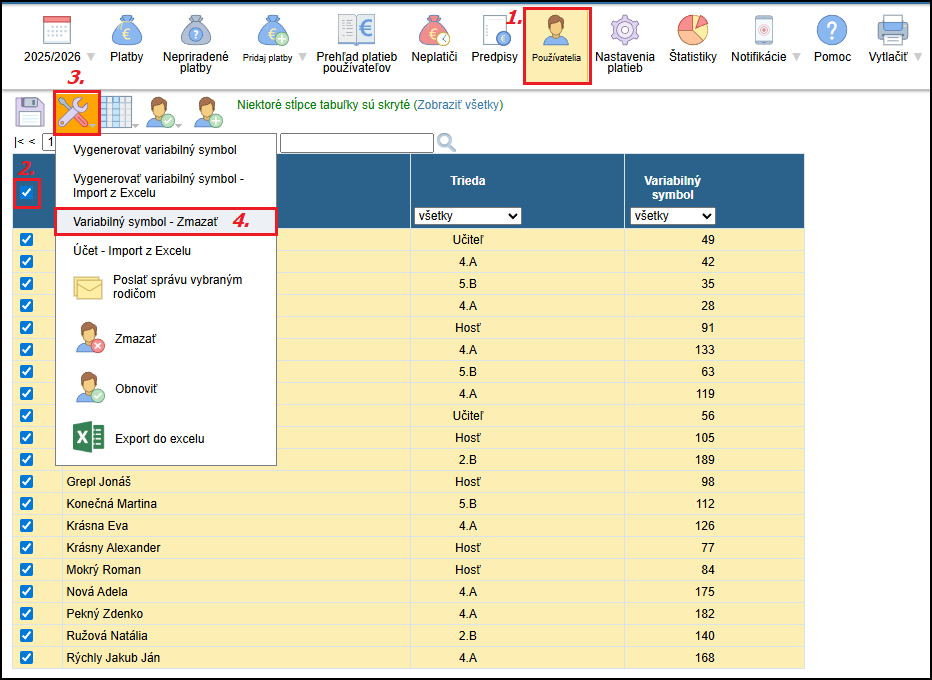 a. Vygenerovanie variabilného symbolu v EduPage urobíte v záložke Používatelia :
