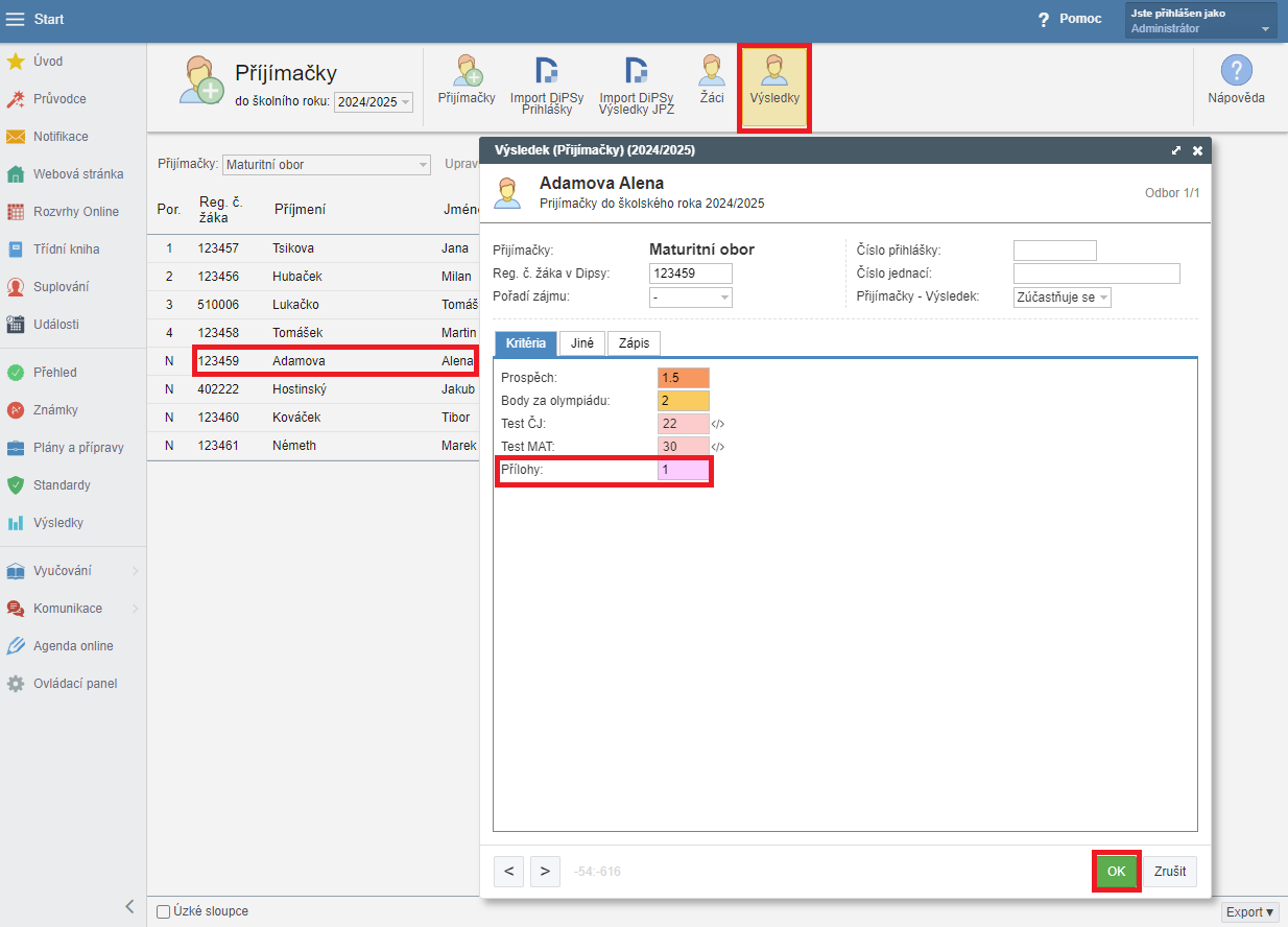 a žiakom, ktorí nesplnili danú podmienku, nastavíte 1 (žiakom, ktorí majú všetky prílohy v poriadku nemusíte nič nastavovať):