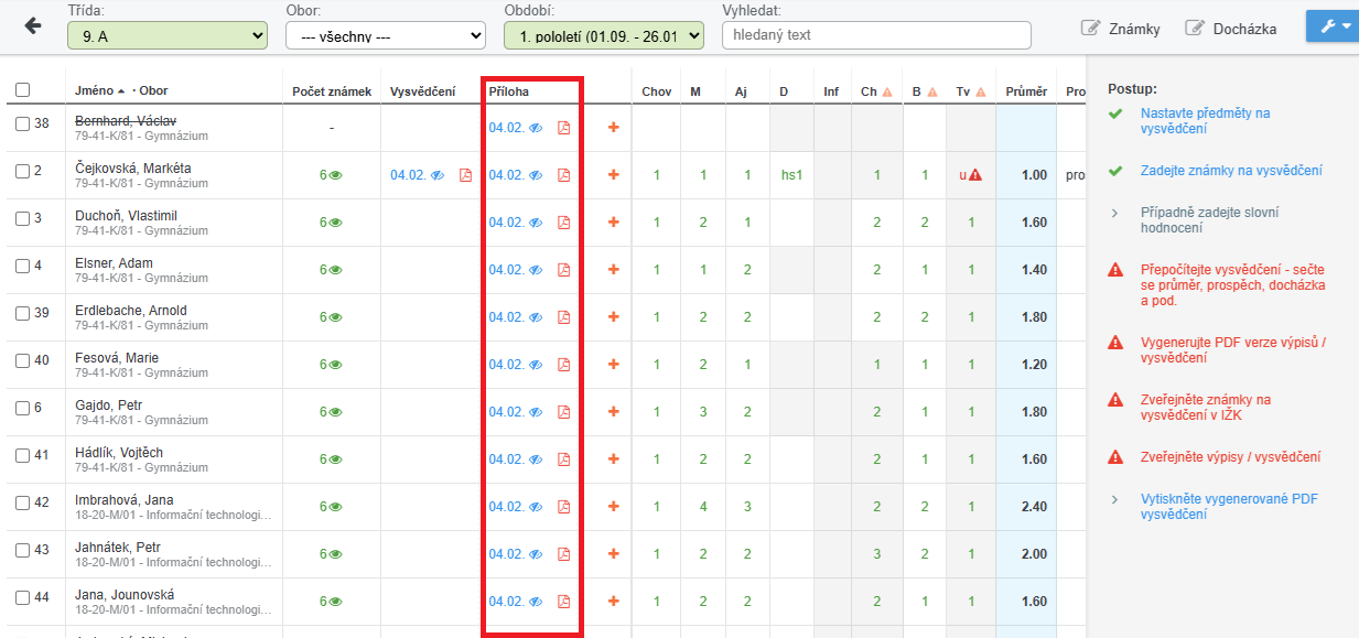 Žiakom sa potom zobrazia zverejnené dokumenty ako príloha k vysvedčeniu.