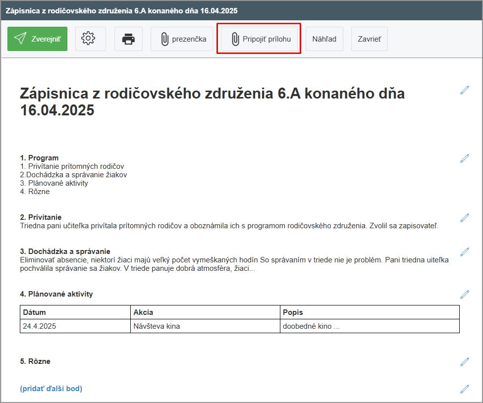 Ako k zápisnici pripojiť prílohu