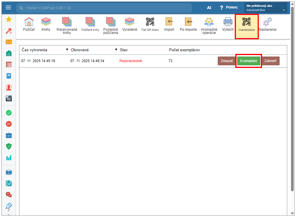 Ako vytvoriť inventarizačný zoznam v module Knižnica.