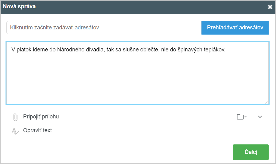 Po napísaní správy stlačte tlačidlo "Opraviť text".